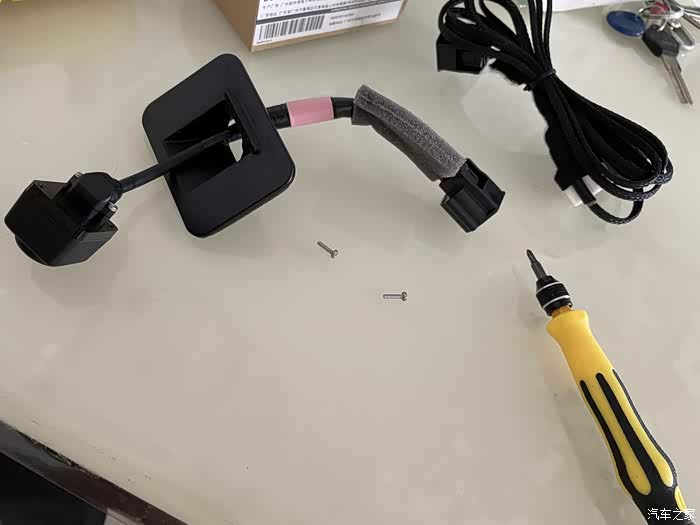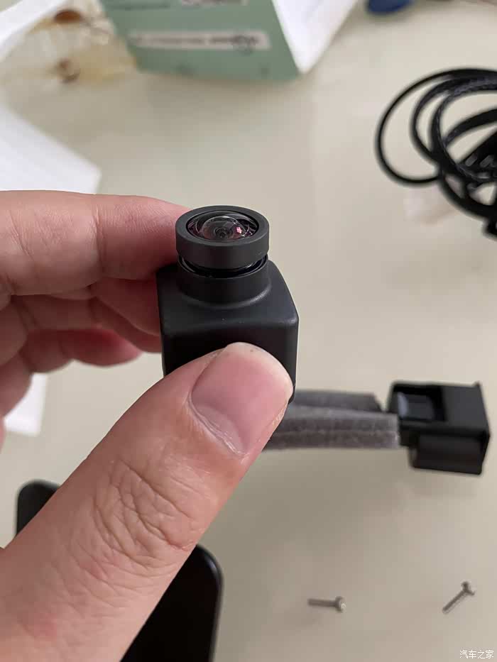 然后将摄像头的接插件断开,同样用一字螺丝刀将摄像头底座位置撬开,摄像头连同支架便可整体拆下来了,将原车的摄像头用小型十字刀拆下来,换上购买的高清摄像头,并将摄像头与安装支架紧固好。