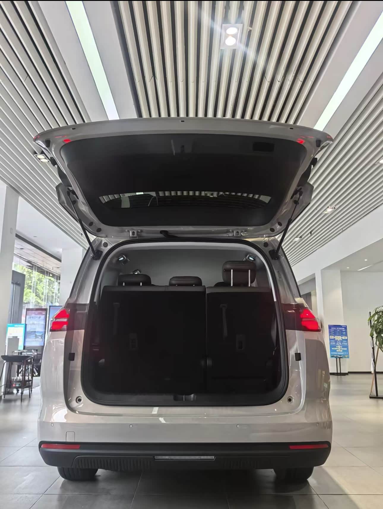 新车采用2+2+3的7座布局,第二排是两个独立航空座椅,带扶手和腿托调节。我身高178cm,坐进第三排膝盖离前排还有一拳距离,头部空间一拳半,短途乘坐不憋屈。但第三排座椅偏薄,长途舒适性一般。