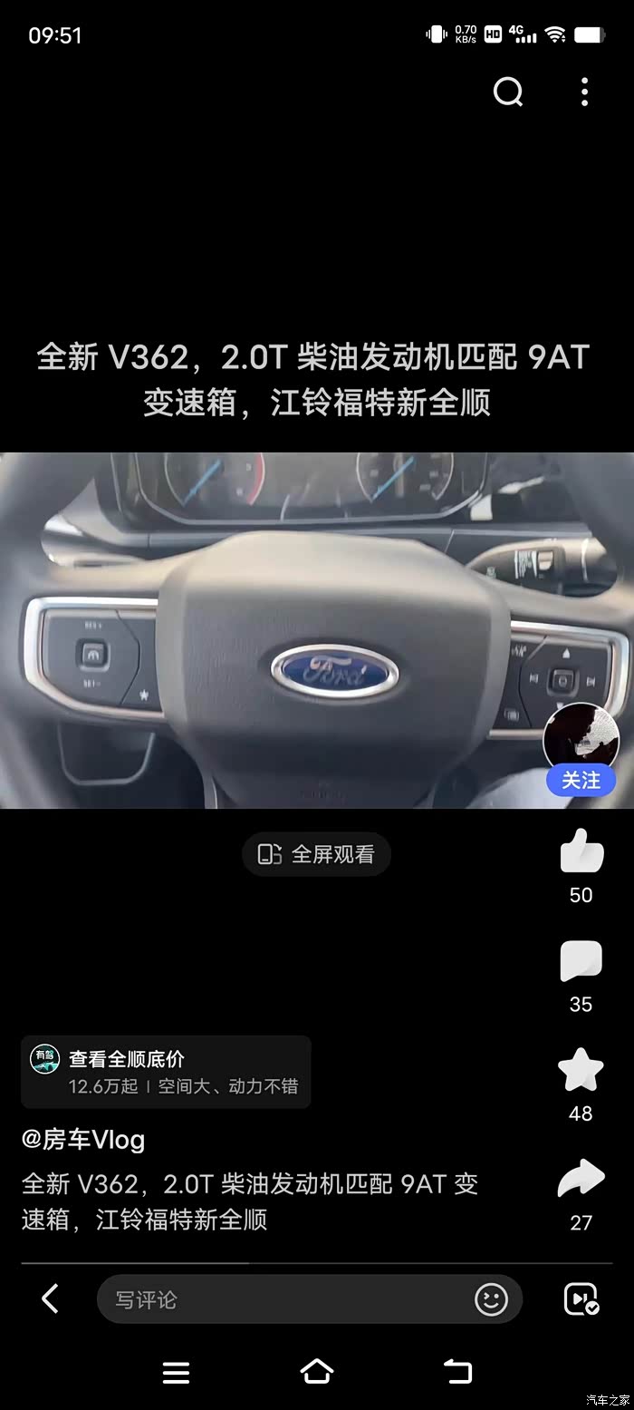 以为是Ranger国产的柴油机,好像搞错了,全顺这个2.0T柴油配9AT,Ranger柴油应该是配6AT,看着玩吧。视频链接https://mbd.baidu.com/newspage/data/videolanding?nid=sv_8555844007228058105&sourceFrom=share