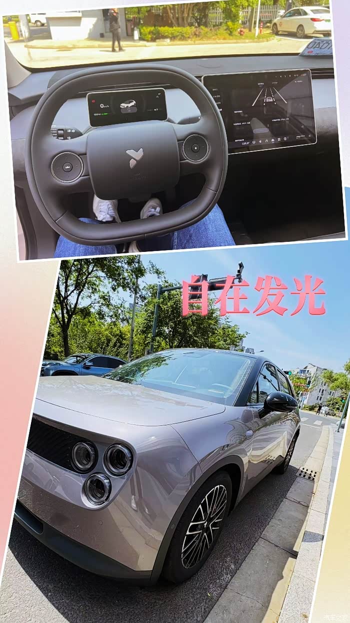 和销售约了试驾,开起来的第一感觉就是——灵活! 网上说的4.7米最小转弯半径真不是吹的,掉头一把过,和我的那台双门smart比很接近了,和ET5T比更是强太多了。在苏州老城区开这种小车代步,真的比大车惬意太多。