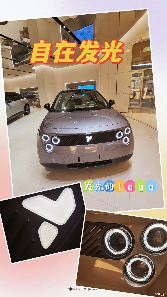 昨天看完直播,今天趁着周末直接冲到店里试驾了萤火虫。展厅里停的是发光版灵感紫+温暖米内饰的组合,这个配色真的挺耐看,尤其是灵感紫在灯光下质感拉满。前后的萤火虫LOGO会发光,就很萤火虫,高辨识度前后“三重奏”灯组一定是萤火虫在路上最吸睛的地方。