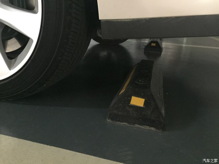 停车场常见的这个卡车轮的东西(我也不知道叫什么),这个高度大家都知道,ATS得屁股进入,车头进入的话,高度刚好擦到车轮前方的软板,虽然没关系,但也心疼
