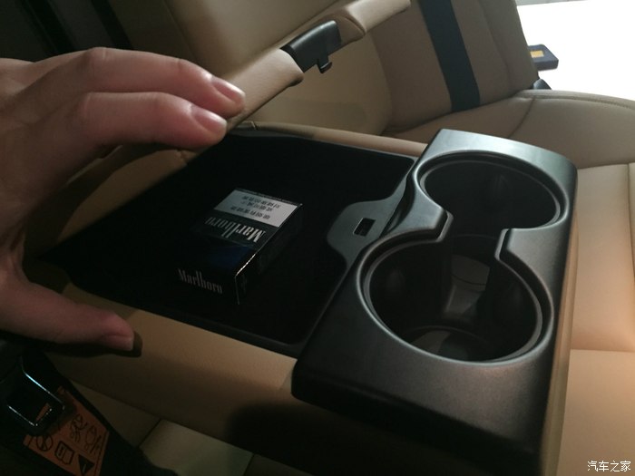 下面说一下后排中间扶手箱,我觉得挺有意思,一是可以联通后备箱,存取些东西,比如纸巾什么的