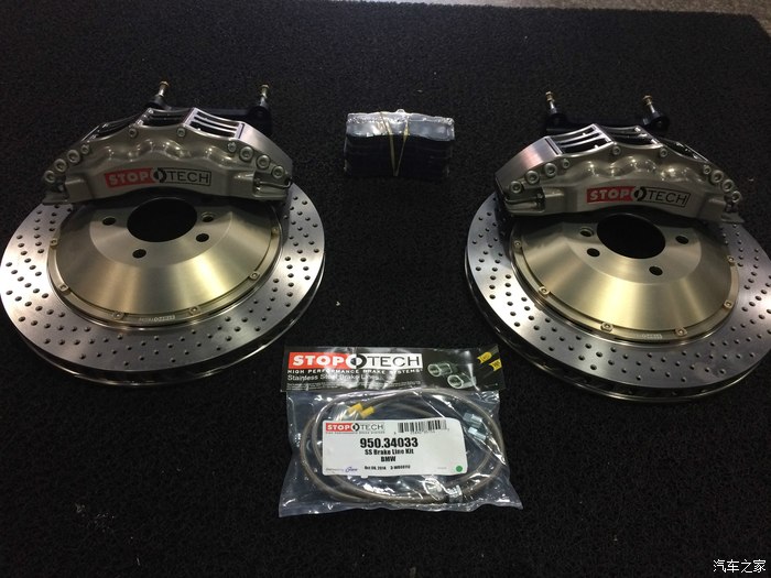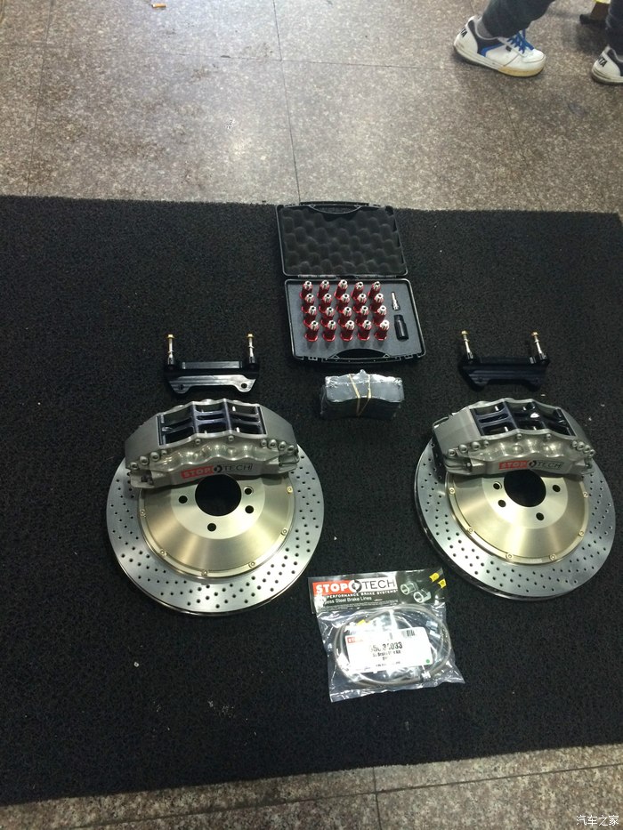 刹车我把原来的355的STR卖了 换了380的STR还是打孔。。。。因为刹车力一样但是力臂大了制动效果真心不错。。。