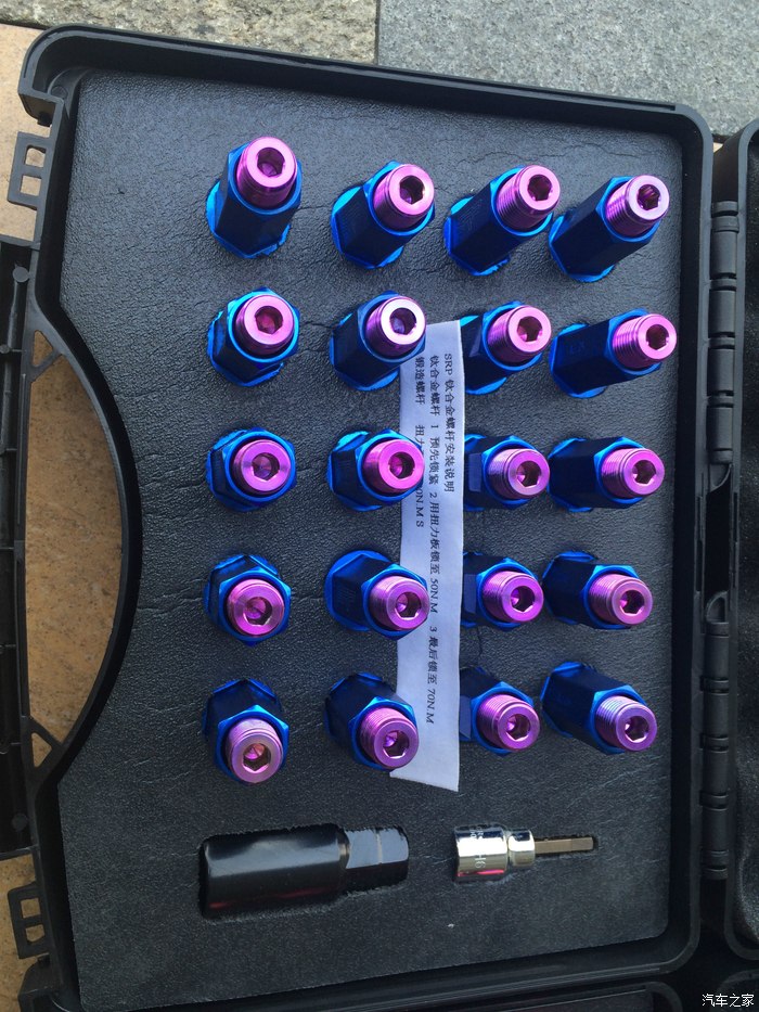 换了钛合金螺丝。。。。麻痹我买的时候螺杆是银色的。。。。现在是紫色的。。。。