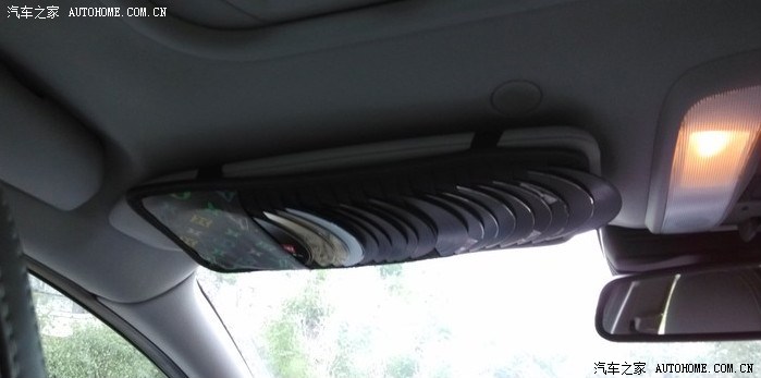 副驾驶头上放纸巾盒。我觉得这样比较安全。但是有个小问题,就是S60的化妆镜尺寸太大了,纸巾盒的夹子会挡住。LD要照镜子的时候就有点麻烦了。