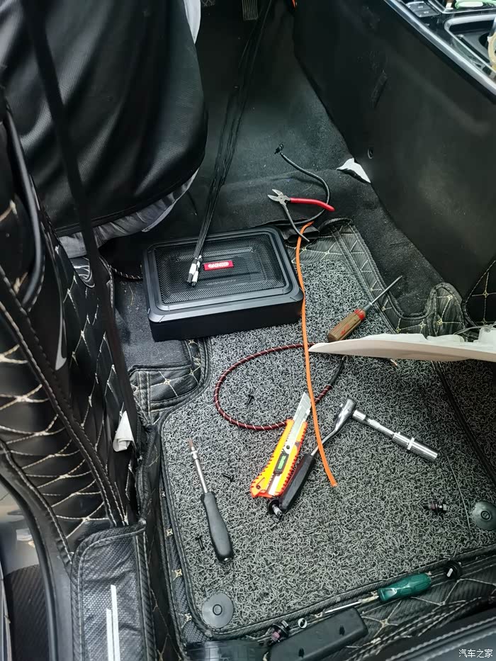 低音炮我放到了主驾驶座位下边,车友还说屁股要震喽,我是无所谓,没有体验过,那咱就体验一下喽