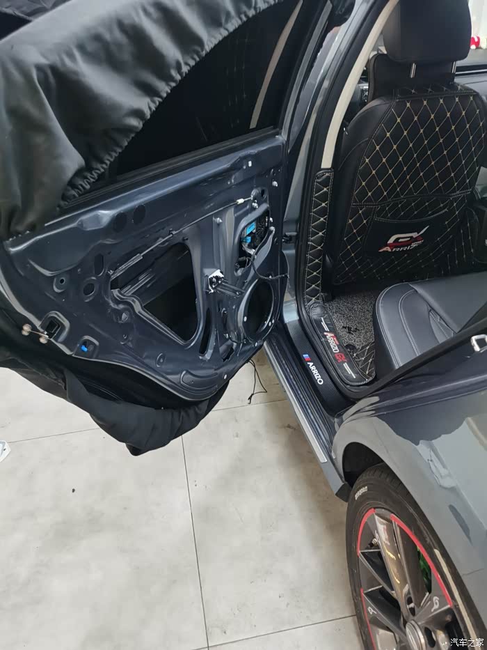 最后后门上开两个孔,装俩高音,这就齐了,整个车里的音质提升一个档次。
