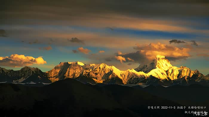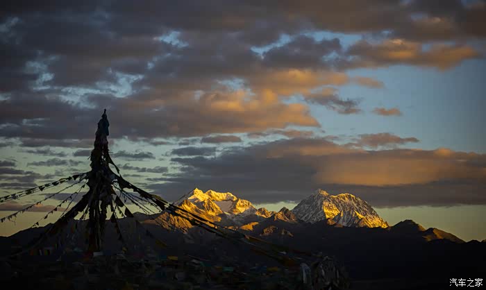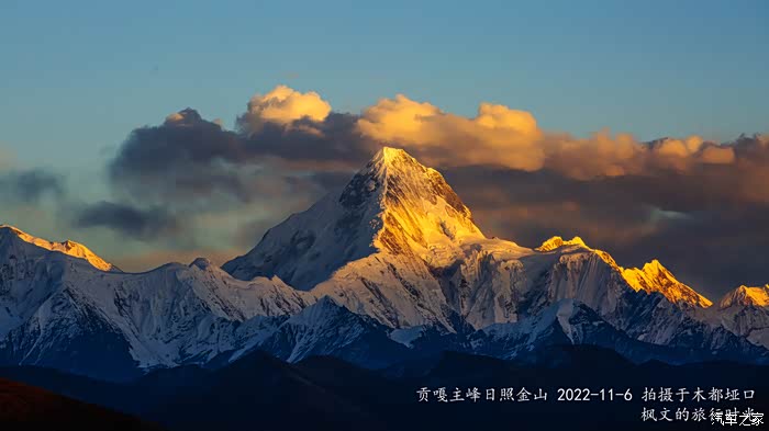因为上次去哈喀垭口没能拍到完美的贡嘎日落,于是今天决定去木都垭口这个白塔机位再拍贡嘎。木都垭口在哈喀垭口下面的一个垭口,距离大概2公里左右,因为这里有经幡和白塔,若是天气好的话,是不错的机位。