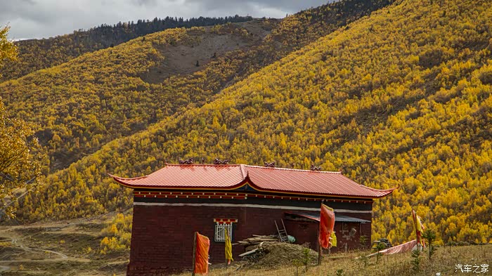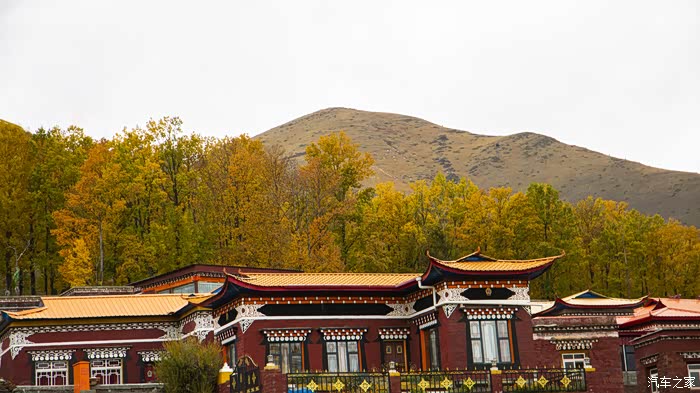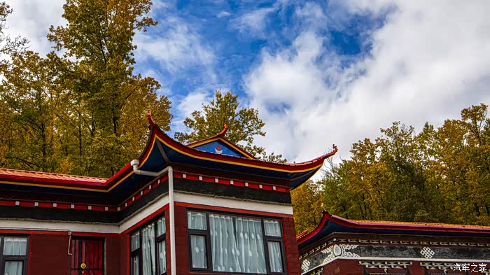 在新都桥无所事事,想去拍一下新都桥的秋色,闲逛到新都桥高尔寺佛经学院,这个学院规模不大,红色的房子是寺庙给喇嘛们地皮,由喇嘛自己建的房子,在房子后面有一片柏杨林,正当金黄时。衬托着红房子,一片好景。