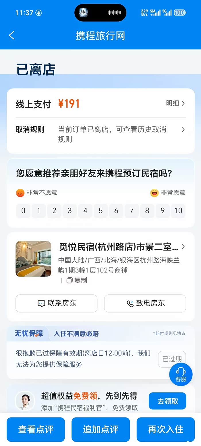 (四)住宿费:北海觅悦民宿190元/间,共190*2=380元。