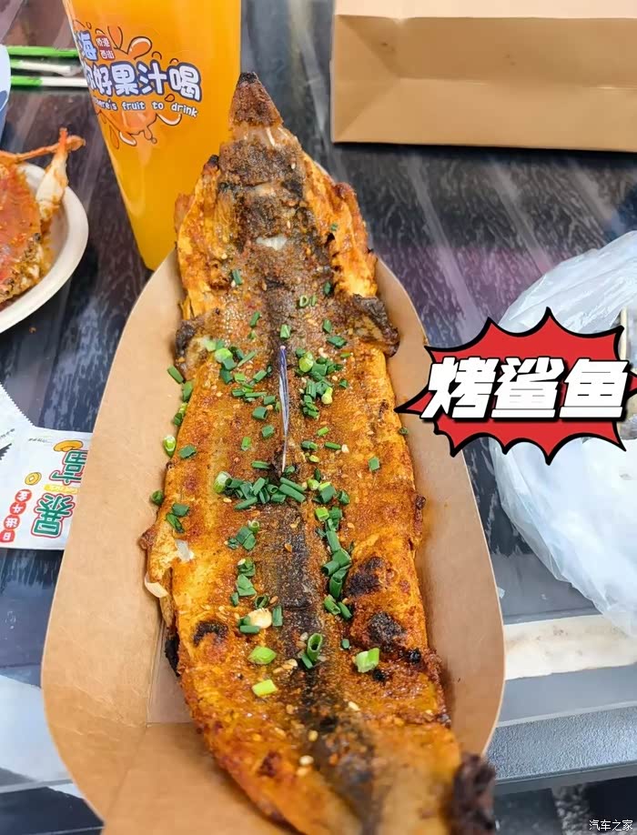 烤鲨鱼,肉还挺嫩的,38/条,我觉得价格可以,味道就是烤鱼的味道,没啥很特别的地方没吃过的买来尝尝未尝不可啊。