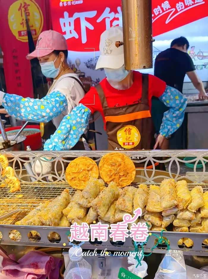 信记的虾饼。虾饼和春卷各买了一个。虾饼外酥里嫩,脆脆的,虾的鲜味还是很明显的,比之前随手买到的要好吃,春卷也不错,料很足。不想排长队的,请早点来!不然真拍不起那个队啊。