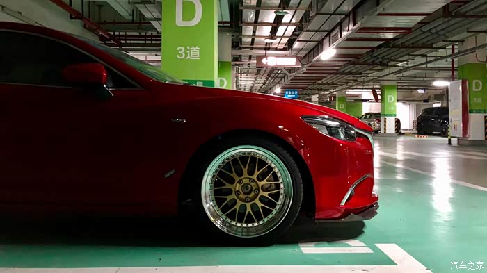 但是为什么说“基本”,说来话长。前轮8.5J完美。但是,因为阿特兹奇葩的后轮拱,竟然有一个L字形内凹锋利收边(大家可以摸一下,其他车是没有的),这个9.5J不改倾角的情况下负重会刮到轮胎,我就刮废了一条才跑了几百公里的胎好心痛。解决办法有一个,就是卷边,基本改装店都会,把L字形卷成小U字形,就不会刮伤轮胎。