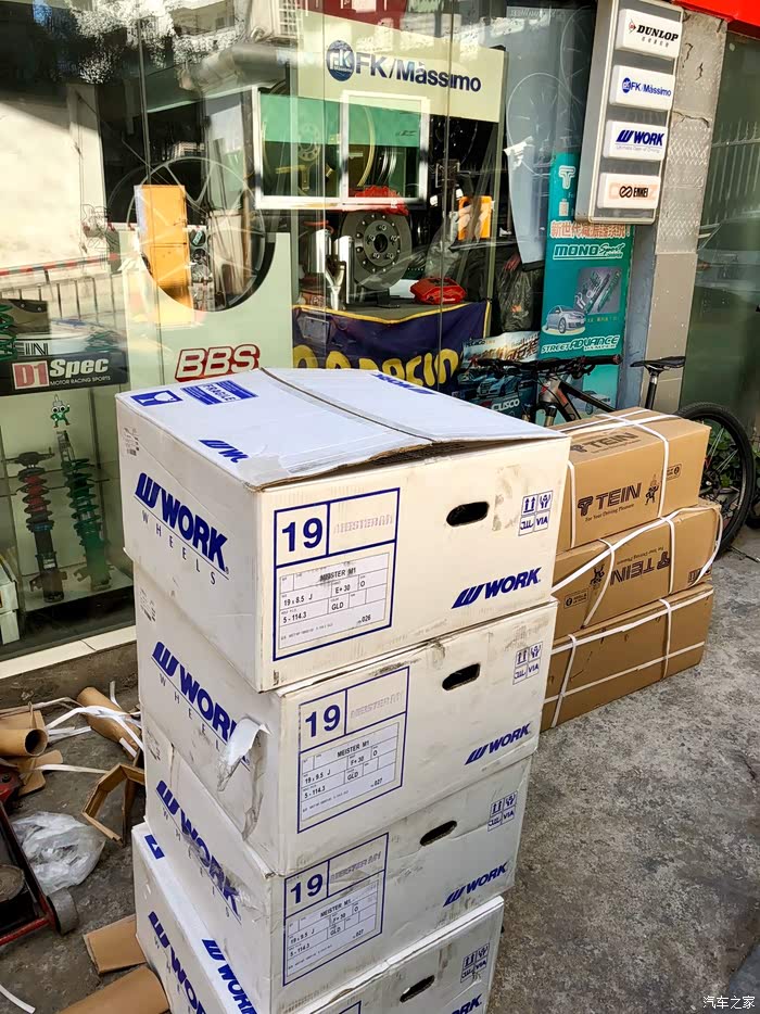 潜水这两年间,换了套轮毂,是19寸的日本WORK MEISTER M1 3P 三片式锻造,定制数据,前后大概等了3个月。数据如下: