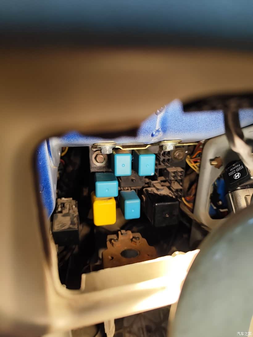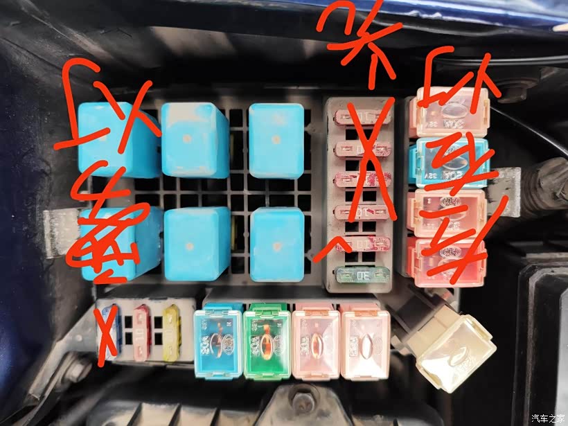 有一天上车,准备上班,钥匙旋到on等车自检,却没听到油泵预工作声音,有点疑虑,但还是启动车子,车抖动不正常,没多会(一分钟不到)就熄火了。网上百度见到有马友发贴说是雾灯盖板后的继电器故障导致的。先拔下油泵供电插头,测正负极,试灯不亮。然后取下雾灯盖板,拔下上面三个蓝色继电器(因为不确定哪个是接油泵的),检查发现均是好的,于是又全部装去,再用试灯测油泵插头,居然点亮了试灯,12v电,心情好激动,赶紧插上油泵插头,钥匙旋到on,却没听到油泵动静,心忐忑,开始错误操作了。继续启动车子,祈祷奇迹出现,然而着车后抖动几下就熄火了。再次拔下油泵插头,上试灯,却再也没点亮过了。心开始慌乱了,再上网匆匆百度,了解到可以取下继电器短接供电端子测试,马上操作,结果慌乱中出错,把其中一个继电器(记不清是哪一个了)的线圈两脚短接了,想来就是这个严重错误导致了现在的局面。接下来拆油泵,真正的故障点也就找到了,是油泵电机坏了,换了新电机,要是一开始就查油泵换泵芯就好了,现在线路搞出故障了,油泵继电器控制线路问题,也判断不了是ecu发动机电脑板坏了还是线路短路或断路了,肠子都悔青了,难道好好的“小蓝马”就这样毁在我手上了?恳请坛里马友支支招指导一下怎样操作,救救我的小马。前雾灯、左右远近光灯和空调(air con)共6处保险均无电,会是哪儿故障引起的呢?油泵继电器左边的另外两个一模一样的会不会是前雾灯继电器和空调继电器?发动机仓内有空调保险和继电器,车内既然有空调保险(无电),是否也应该有个继电器?