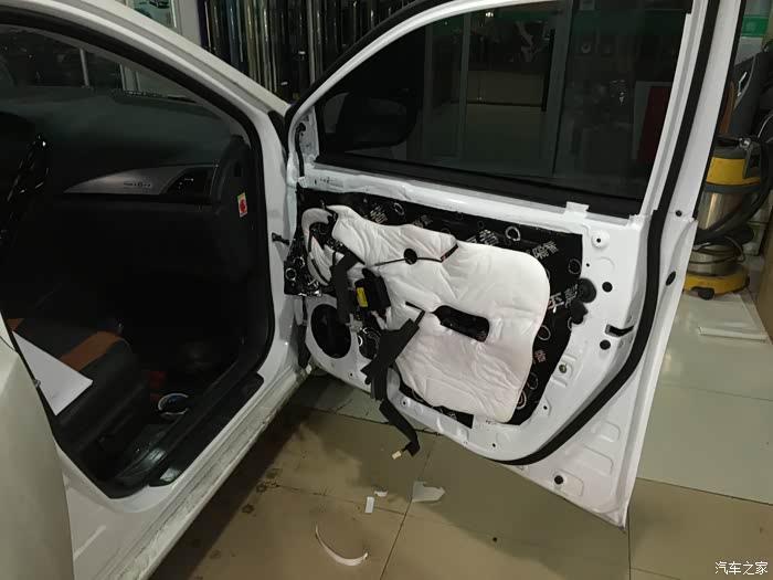另外4门隔音后,车内更加安静了,左右两边过车的时候安静不少。速度快的时候风燥声更明显了,发动机的声音还是老样子,没有因为门隔音了,而使得发动机声音更突出。这家隔音确实做的不错!听老板讲秦在他这里做了都数不过来了,还有一辆拆仪表盘做防火墙隔音的!我也服了这车主,这也敢做!老板还说有个福克斯的车主,拿着分贝仪来的,说做完全车隔音下来6个分贝才给钱。场子里没人敢接,她接了,最后当然是给钱啦。不知真假,就当故事听听吧!