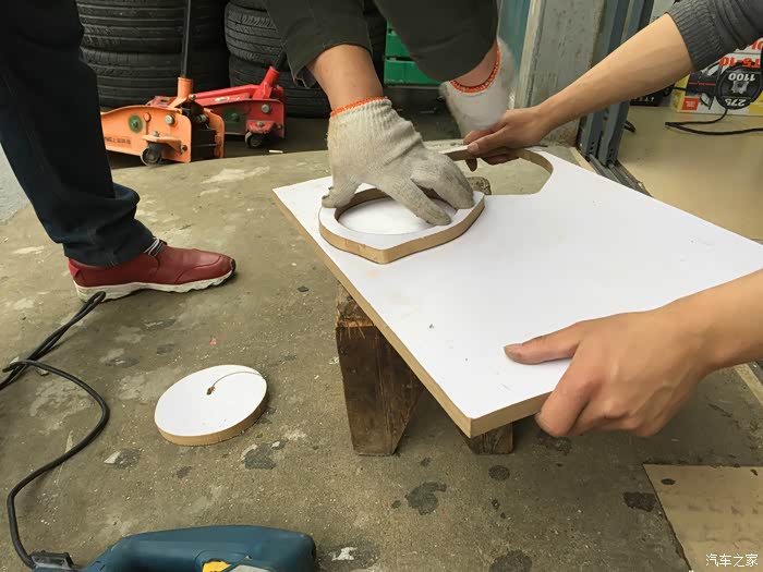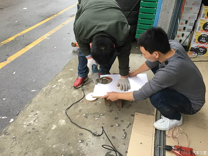师傅们在现场按原车喇叭拓膜喇叭衬垫