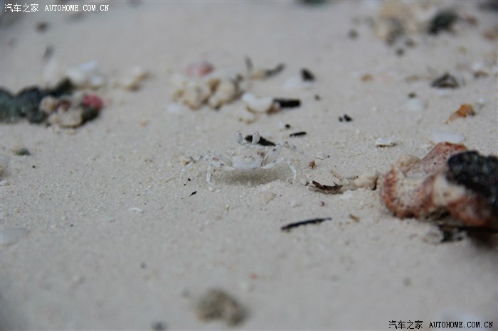 整理好后出来散步放松筋骨,老婆马上被沙滩上的寄居蟹和小螃蟹吸引了。。