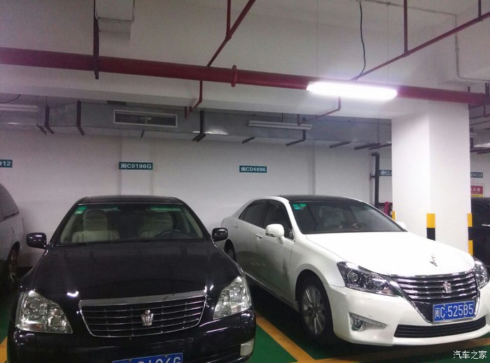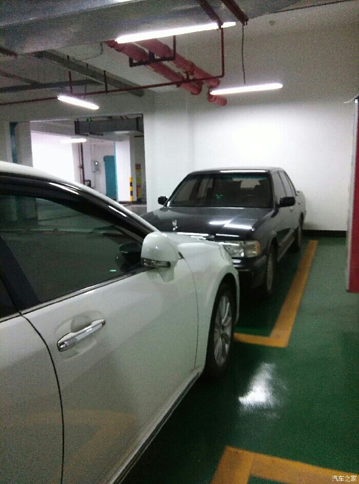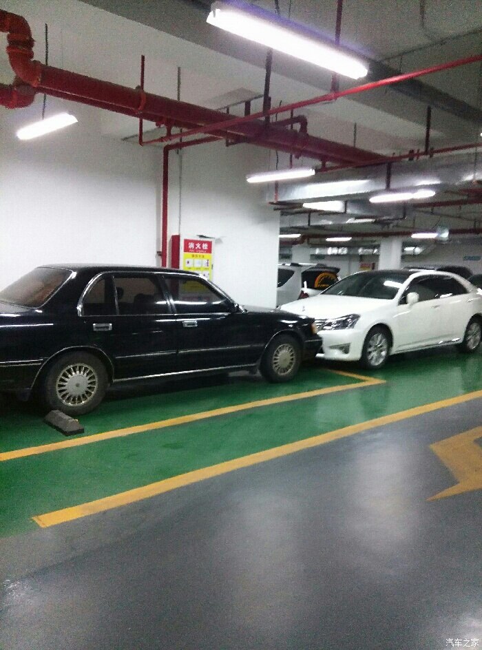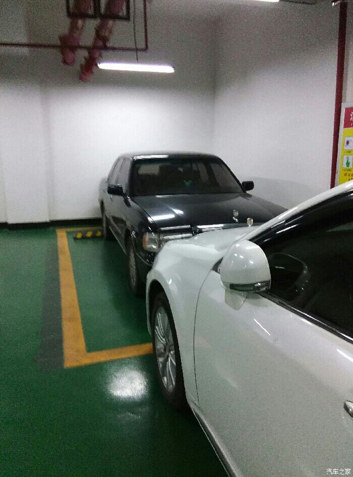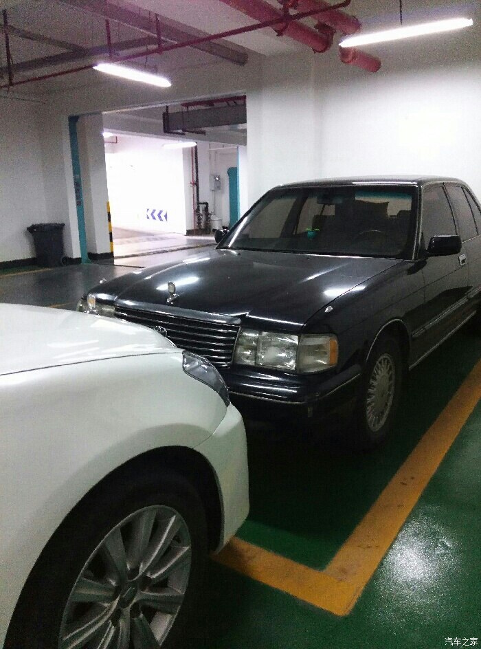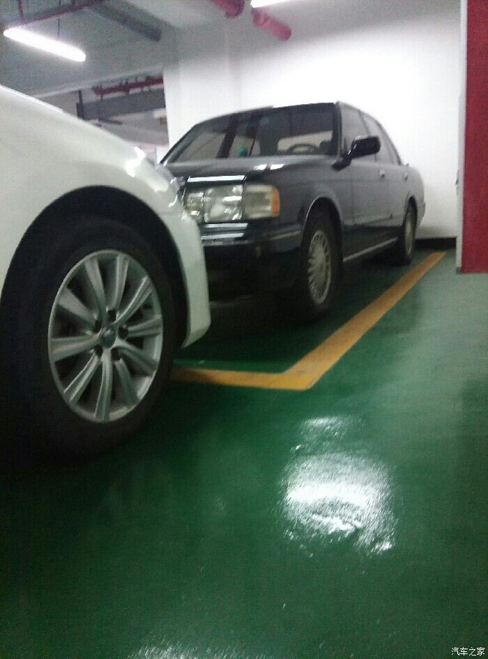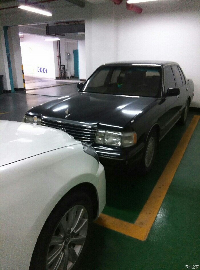 今天,为了新单位的厂房工地事宜,又一次来总部开会,车没有地方停了!就直接开到总部的地下停车场,看到原车队手下兄弟的一辆jzs133皇冠,想也没用多想就掉头,硬生生地挤进并列位置通道里。两部皇冠车紧紧贴在一块了。下车后,居然看到两部车的牌照挨在一块了!