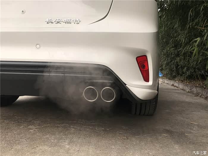 单边双出排气管,货真价实,看雾气就能看出是“双发”。