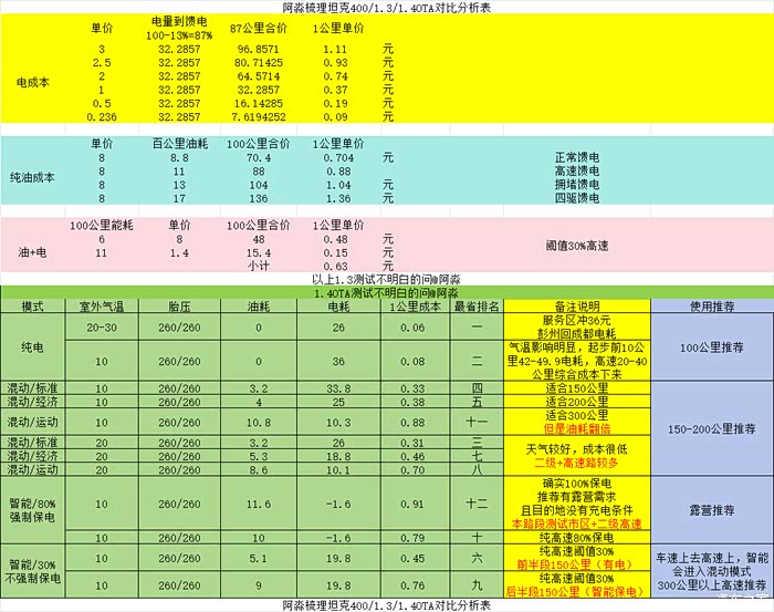 1,使用情况:油5000公里电19000公里,城市84%越野16%
