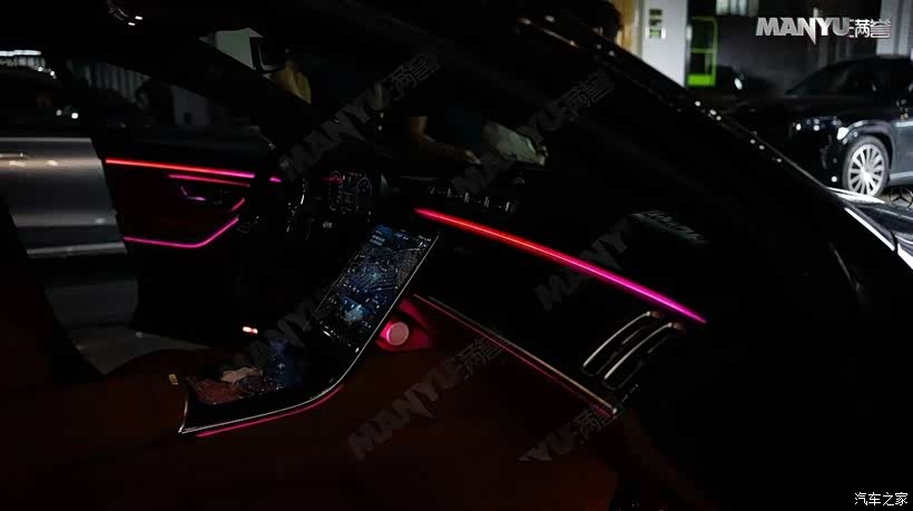 原车氛围灯是很小的一根在下面,完全没有奔驰的氛围感。