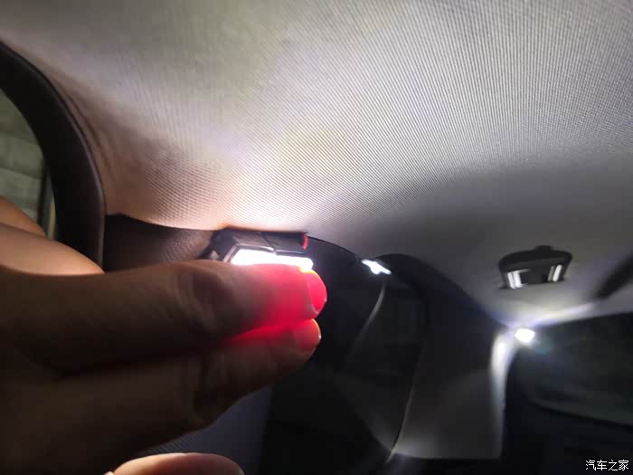 改造初衷,开门亮灯感觉别扭,并且灯亮度不满意,后尾箱灯给设计到后备箱侧面靠下的位置也真是天才,趁着车顶加装行李架拆顶棚的机会,把这两个地方的灯就给改了,其实开始二排也想改的,拆下来后发现二排灯空间小,改装后作用也不大,改来改去也没啥意思,就又原样装回去了。