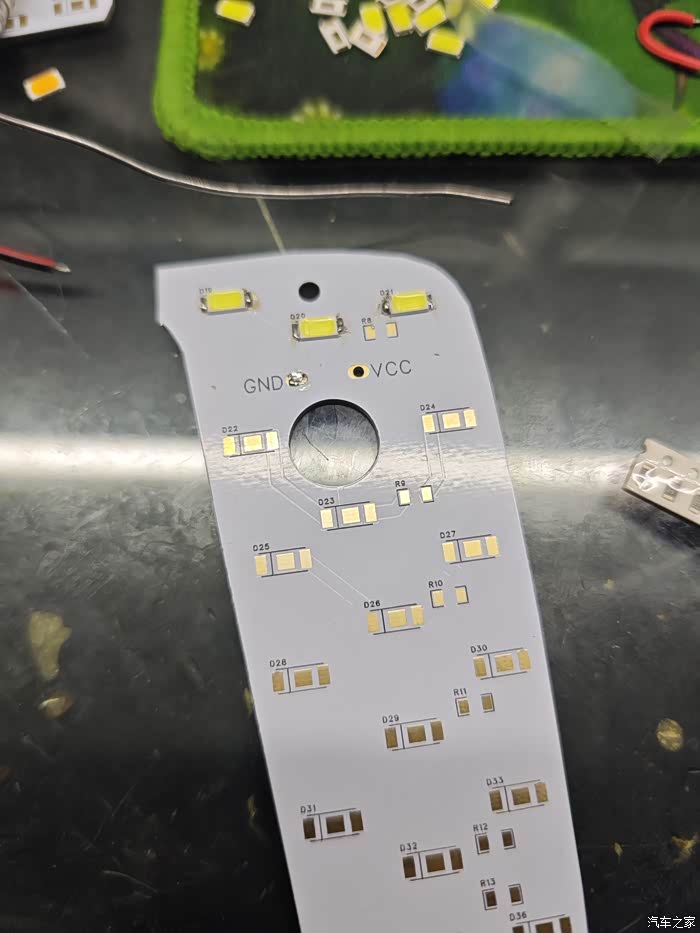 最后灯板直接焊线焊到上图红黑两根线上就行了,红正黑负。最后装回去就行了。