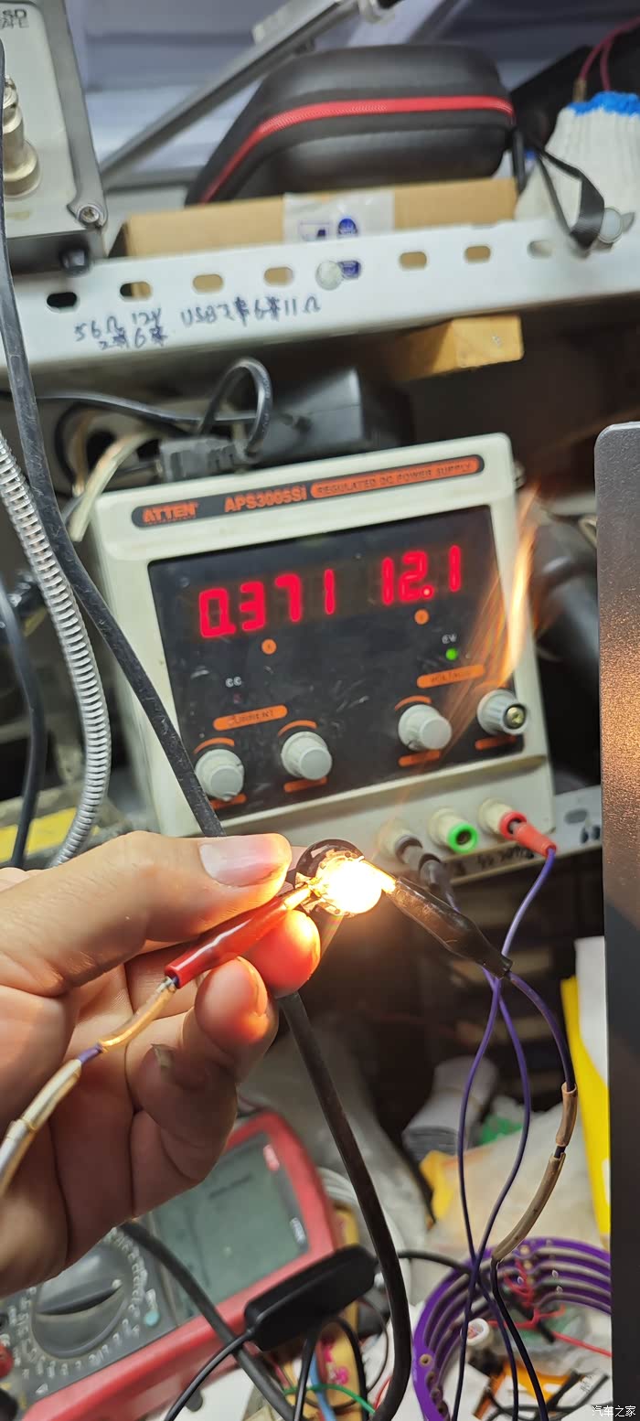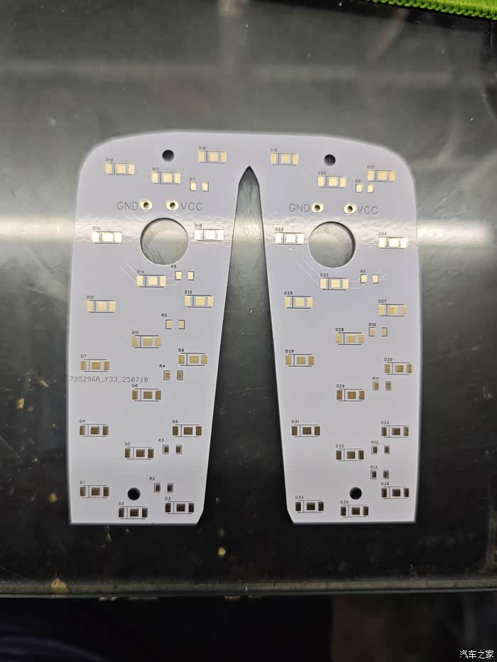 那个长条的模块是手头有的手扫调光模块,就做了个灯板把它镶到上面了,手一滑过模块5厘米内就可以开关灯,还可以调整亮度,实测后备箱灯开门15分钟后或关门后就没电了,所以模块也不用考虑安全问题了,就裸奔吧。来个亮灯图