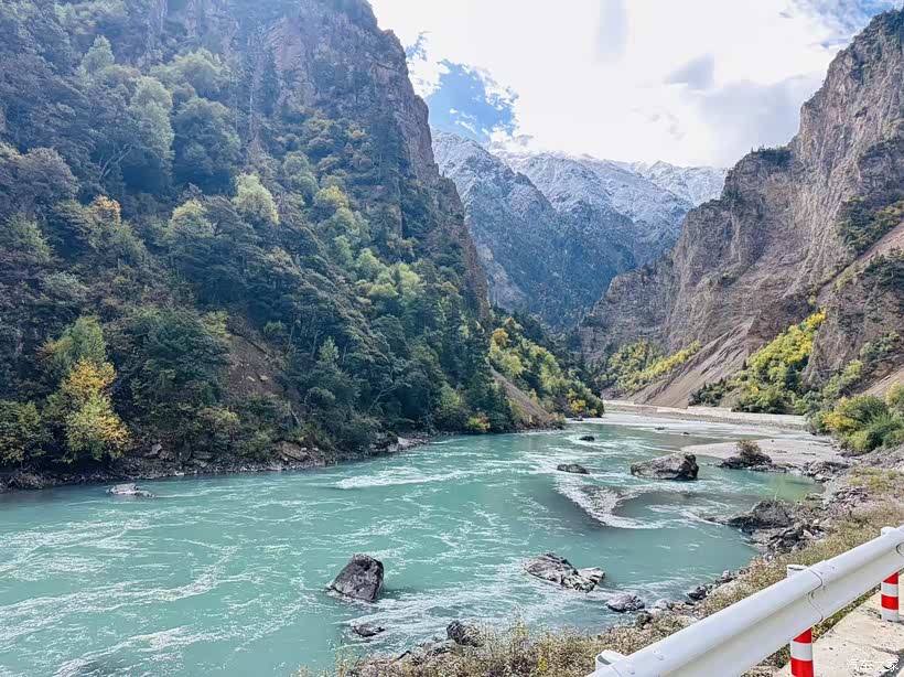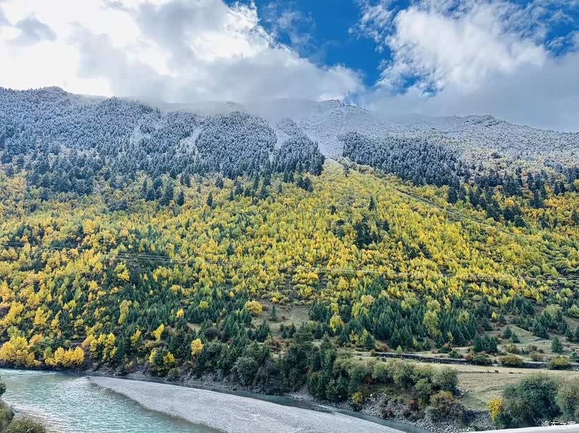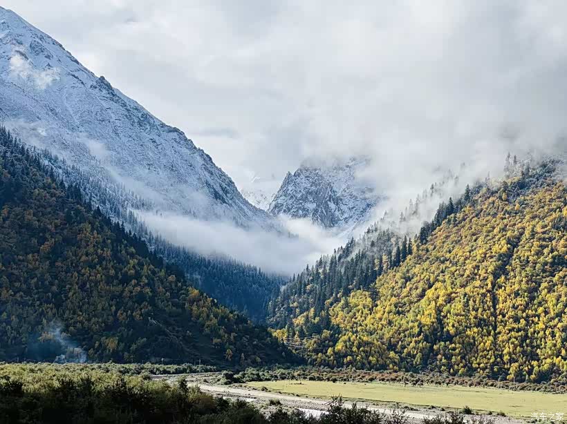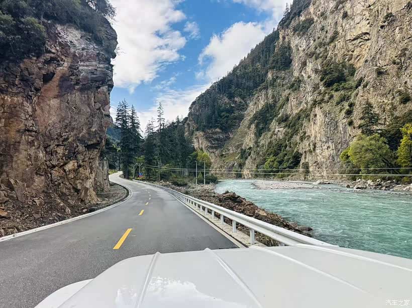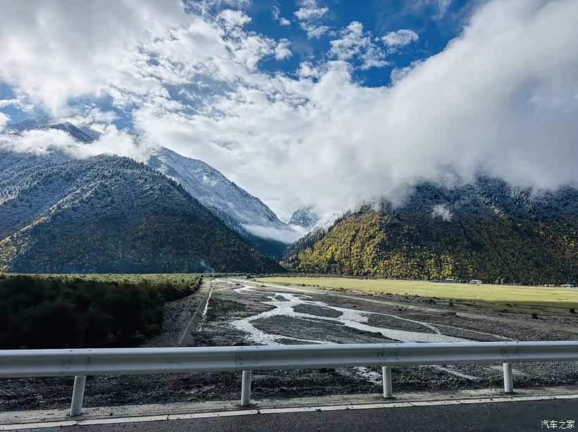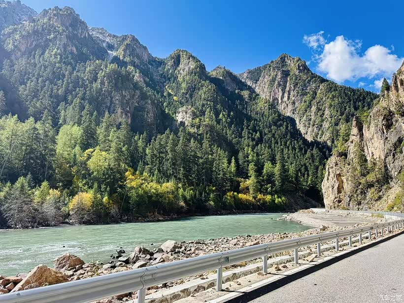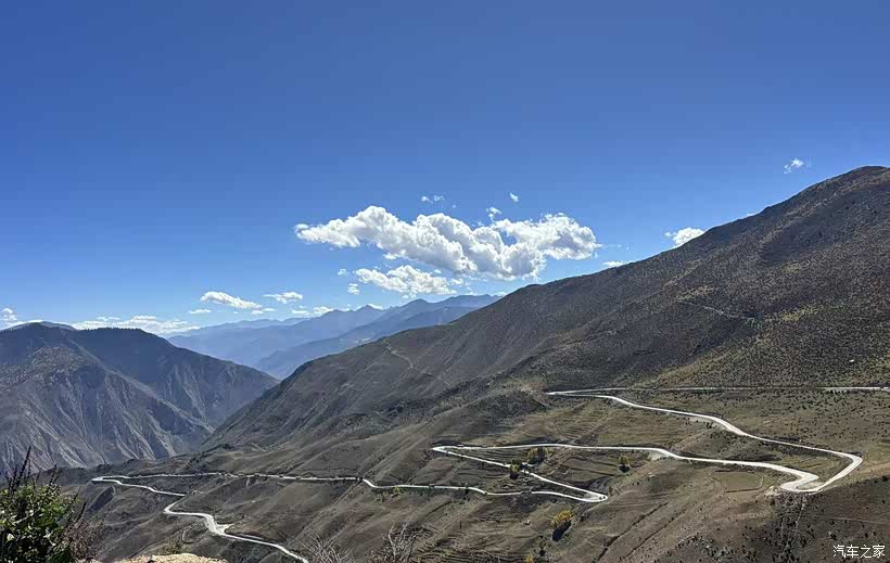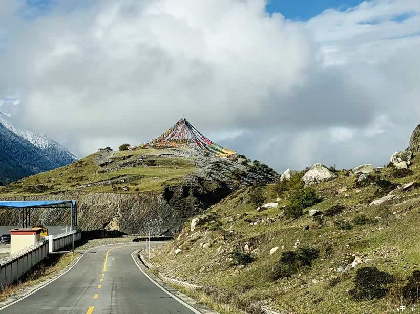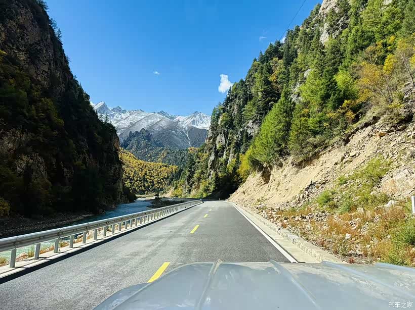 以前的老国道是绕夏贡拉山垭口,后来修建了隧道,名字叫夏贡拉山隧道。隧道很长,出来之后进入山区,再盘山绕几圈就到河谷了。