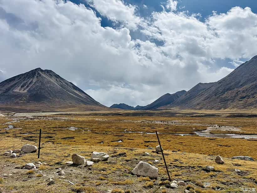 我沿着河谷向着那曲地区前进。走着走着发现远处有一台陆巡侧倾在公路上,走进了一看是坦克500。当时坦克500的右边前后两条胎都爆了,那地方没有信号,于是我停下车走向坦克500。车主一看有人过来了也连忙下车,我问车主有没有报保险,车主说已经报了保险正在等待救援。然后我问车主要不要水,车主说车上有水。我一看车主不需要帮助,那咱就继续前进吧。