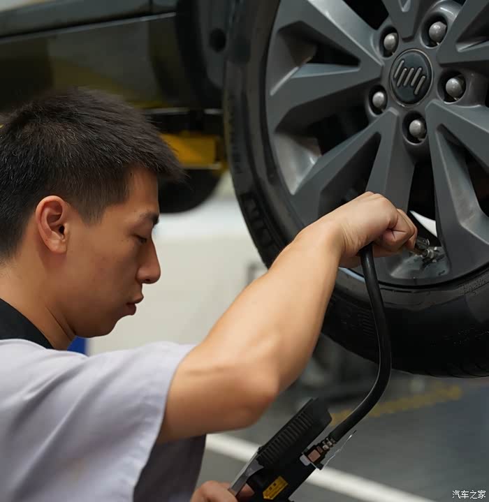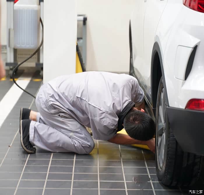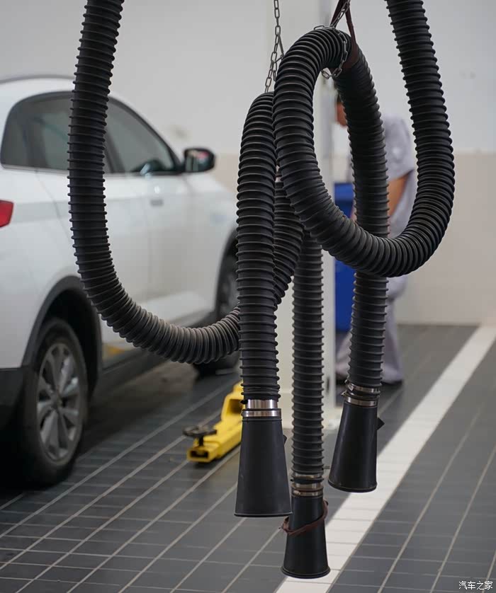 负责维修保养的师傅还是很认真的。外观内饰都检查一遍,车辆的电子系统也用电脑查了查。收集尾气的管子,对于威马来说没有用武之地。师傅一边检查,一边说如果都是电动车了车间里的温度就不会那么高了,而且没有尾气他们的工作环境对于身体就没有了太多的损害了。想想也是。都是电动车了,没有发动机,没有排放尾气,完全可以在车间里装上空调,维修师傅就不用汗流浃背了。