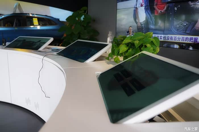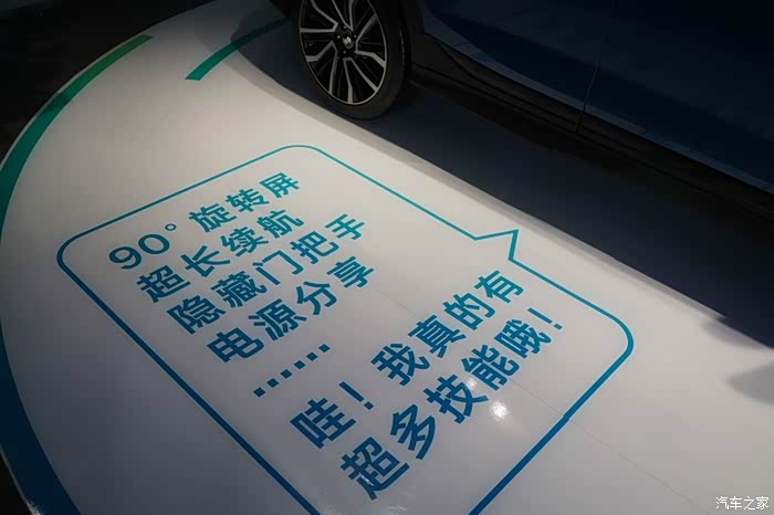 让人清楚直观的可以了解有啥亮点,这展厅还挺有心,不知道是不是所有的威马店都这样呢?展车上面都有一个环形的LED大屏幕,你展在车旁边一分钟,就可以大致了解了威马的亮点。