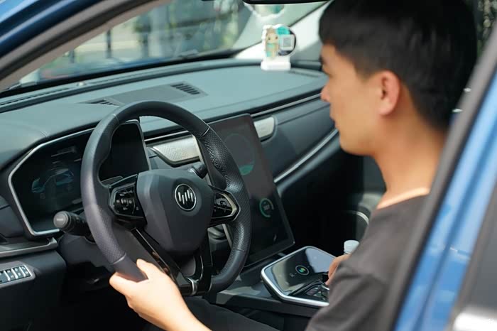 真正打动我选择威马,就是威马的内饰,我觉得绝对是这个价位内饰做的最好,起码是我最喜欢的内饰啊。尤其中间一个能转动的大屏幕,谁座车上谁都说这个大屏幕,太震惊了。横着看竖着看都行,还有座椅,像赛车的座椅,坐上去确实舒服,后排座椅舒不舒服我都顾不上了。反正我平常开车,又不坐后排。