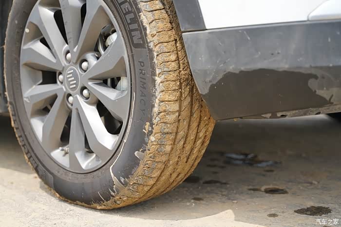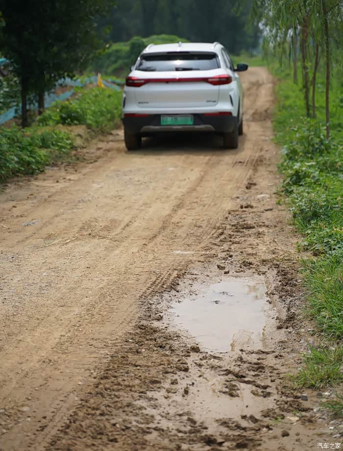 看看,这就是我经常走的烂路,不过不是太坑洼,不过如果是轿车的话就有可能拖地的危险了。没想到威马的底盘够高,而且减震也很舒服,通过烂路的时候我还是很踏实的。米其林的轮胎,静音性很好,不知道是不是像有些朋友说的那样米其林轮胎软。走烂路不错,我就是怕胎软,万一有石头一类的伤到轮胎。再有就是也许为了静音的原因,所以胎纹很细,要是真把威马当SUV估计有点悬。好在大部分道路路况都很好,舒适最重要的。