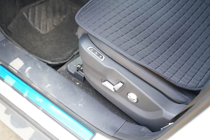 自打入手以后,我也没给车子里加什么装饰,真皮座椅还是露着本来的面目。我也不想再加个什么座套了,加了之后反而会没有了感觉。为了裤子扣不把座椅划伤,就垫了一个坐垫。现在唯一的头疼就是触摸屏太容易留指纹了,打算从网上找找有没有类似于手机磨砂贴膜的。内饰黑白对比,让人坐在车上不会太压抑,如果是全黑的真的是担心会很压抑。如果白色太多,又担心不禁脏,上半部分白色内饰点缀一下挺好。