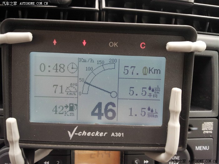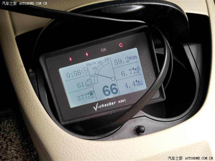 提车时的一个区间油耗,平均速度61,行驶了59.2公里,用时58分钟,平均油耗6.7。巡航公里数需要人为设定油量很不爽,貌似骊威(骏逸)OBD不能输出油量信息?