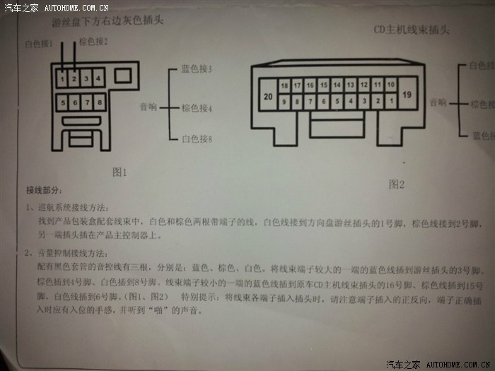 把音响控制线和巡航控制线按照安装说明把插头插好。把线束跟原车线束固定在一起,捆扎牢固。