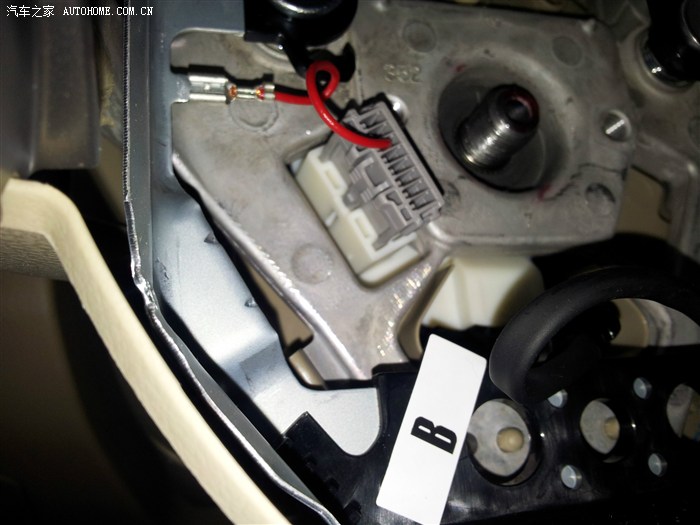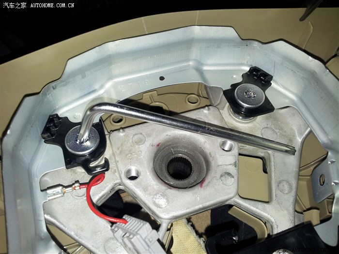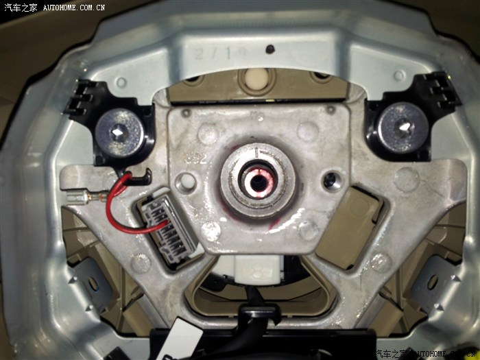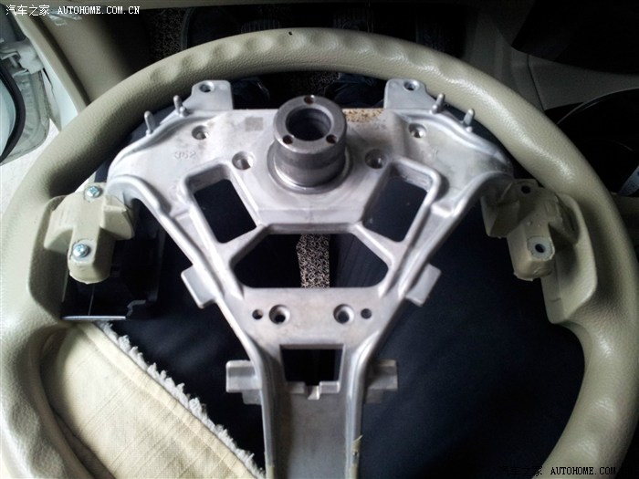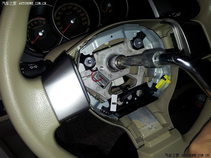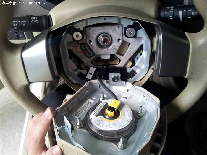方向盘后面的塑料盖,只有上下左右四个卡子固定,把卡子一个一个松开就能拆下来了。