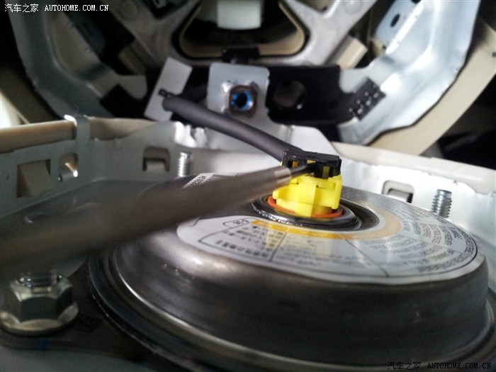 拔掉红线的插头,插上绿线,等方向盘安装完毕后吧灰色插头插到游丝盘上即完成了方向盘的安装。