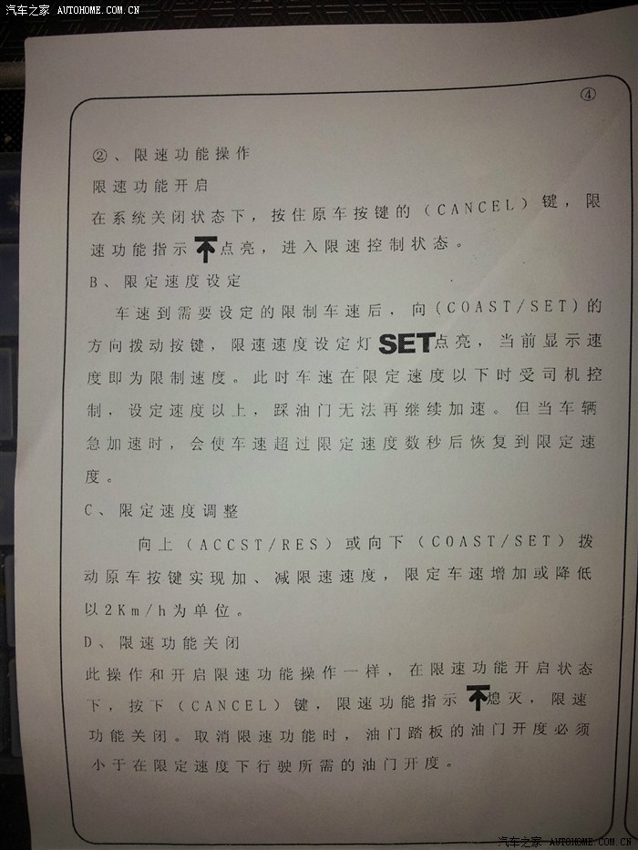 1、有不少车友说巡航没用,不安全。。。个人感觉这个主要是根据各自的使用情况了,我经常跑高速,并且上一辆车巡航也是用习惯了,所以这个车买回来我认为第一必须改的就是定速巡航,特别是日系小车的油门比较轻每一次上高速都要忍受提着脚开车的煎熬。