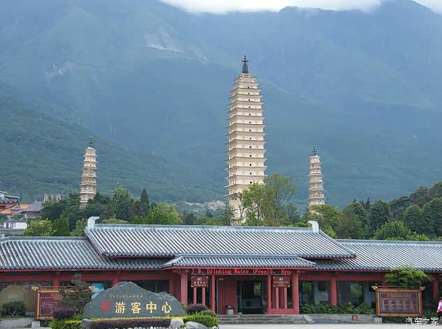 过喜洲下个景点是崇圣三塔:三塔历来是大理的象征。三塔的主塔名叫千寻塔,是中国现存坐塔最高者之一,与西安大小雁塔同时唐代的典型建筑,造型上也与西安小雁塔相似。我们对寺庙不是很感冒,也就没进去,外面拍了两张,门票网上预订90元
