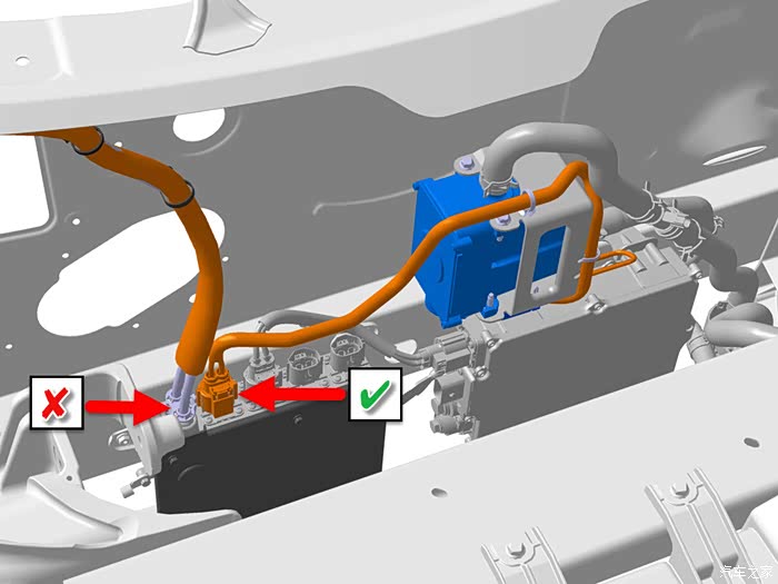 1、要断开12V电池的负极并且整个操作过程负极不要接触到车架,最好用绝缘物包裹好负极。