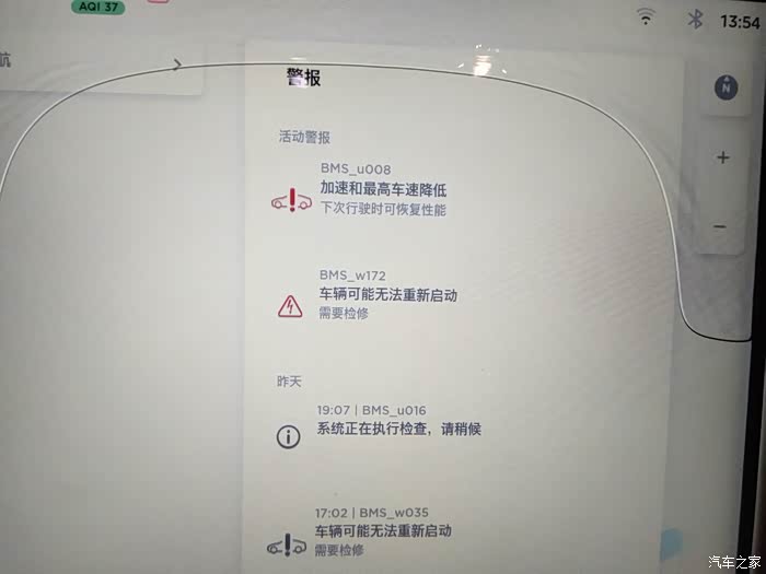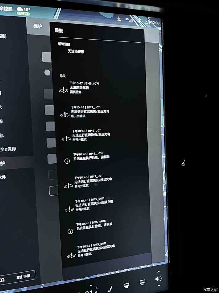 我的是model S P90D购车时间2015年12月。至今已经6年多了,已经过保修期。去年春节前出现了几次故障码bms_ u016系统正在执行检查和 bms_w035车辆可能无法重新启动。但都是很快就好了以为是误报。直到同时出现bms_u008加速和最高车速降低 bms_w172 车辆可能无法重新启动,并且车辆动力输出限制功率100KW加速受限而且没有动能回收。因为离服务中心很远最近的都有400公里。就一直拖着没有去服务中心。年后才决定去特斯拉长沙服务中心维修,顺便更换召回的64G内存EMMC。
