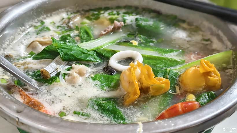 洋浦「海鲜大排档」(人均60元):离逸捷酒店步行5分钟,选了鲜活的虾和芒果螺,白灼后蘸蒜蓉酱,鲜味十足,老板还送了一盘清炒时蔬,分量很足。
