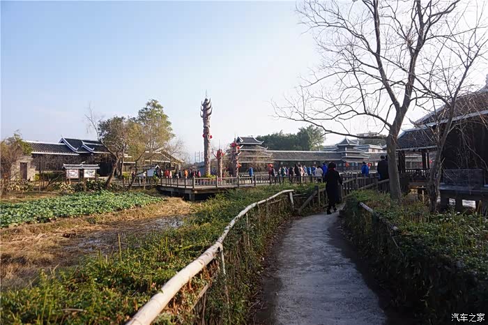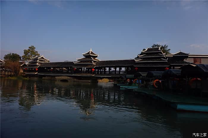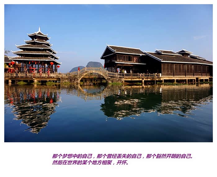 走进这里,一片湖光山色立即映入你的眼帘。只见风吹芦苇白絮飞,水流桃花满地红。一片数十亩宽的水面,风雨桥如长虹卧波,侗鼓楼似青峰入云。那气势,那结构,别致而又紧凑。配以青峰黄稻绿竹,那种闲适,那种宁静,那种安逸,确有一股世外桃源的况味。