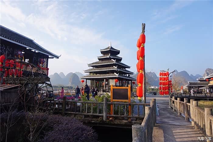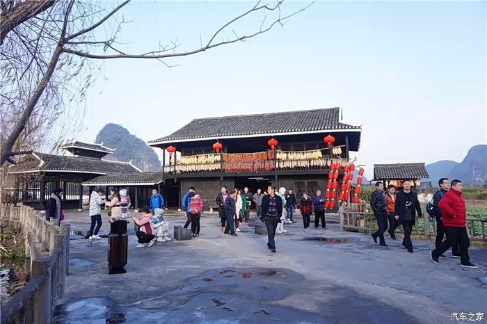 鲁家村位于秀峰区的桃花江中段,距桂林市中心仅2公里。是桂林重点打造的一个旅游特色名村。其实就是一个新建设的旅游新村,该村依山傍水,环境非常好,桂林“老八景”之一的“阳江秋月”指的就是那个地方,电影《西游记》片头风光亦取景于此。村里的建筑也有点特色,坡屋顶、小青瓦、花格窗、白粉墙、青石板集合了传统桂北民居的这些建筑元素。