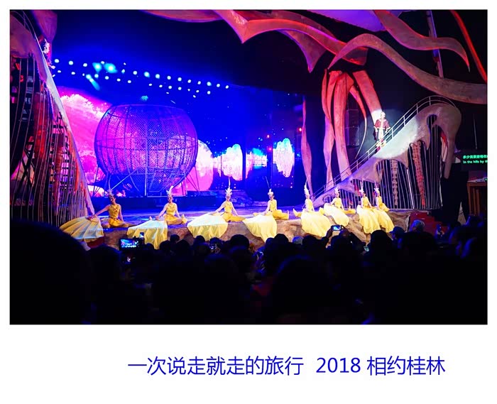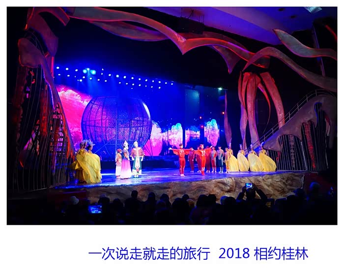 方圆两公里的漓江水域,十二座背景山峰,广袤无际的天穹,构成迄今世界上最大的山水剧场 --印象?刘三姐。