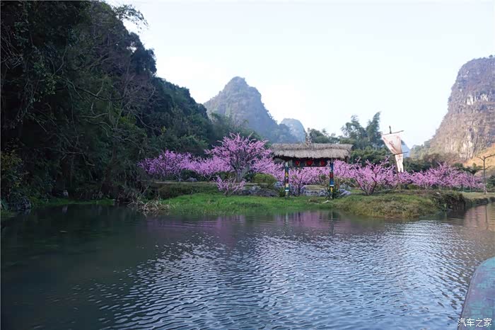 水面渐窄,遂成十米左右的河道,一直向村旁的一座山中延伸,眼看要撞到山壁上,却突然拐了一个弯,穿过一座小石桥,进入一个水洞之中。船随河水一同没入水洞,眼前顿时黑了下来。歌声之中,佤族青年们表演了日常生活中狩猎、收稻、搏击、恋爱等许多场面,让我们游览之余,又增加了不少见识。过了佤族村寨,船把我们又带到了侗族的花楼。花楼是侗族女青年挑花、刺绣、织锦的闺房,是一种有吊脚的两层木楼。